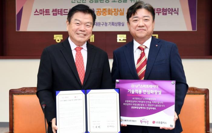 LG유플러스는 동대문구 공중화장실에 'U+스마트레이더'를 설치하고 위급상황 발생 시 경찰서에 알림을 전송하는 시스템을 구축, 안전 사각지대에서 구민 안전을 높이는 데 앞장선다고 21일 밝혔다. LG유플러스는 동대문구청과 업무협약을 맺고 관내 공중화장실에