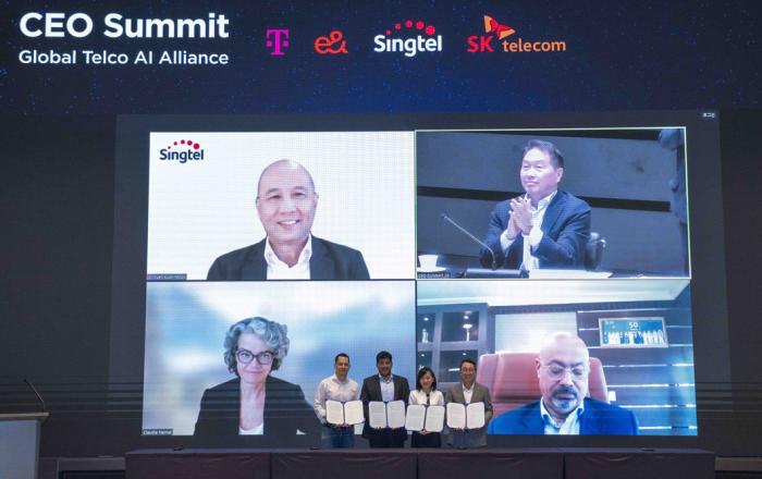SK와 글로벌 통신사들이 전세계적으로 불고 있는 AI 산업 지형(地形) 변화를 선도하기 위해 ‘원팀(One-team)’으로 뭉쳤다. SK텔레콤은 27일 서울 워커힐에서 최태원 회장과 SKT 유영상 사장을 비롯해 유럽, 중동, 아시아의 대표 글로벌 통신사 주요