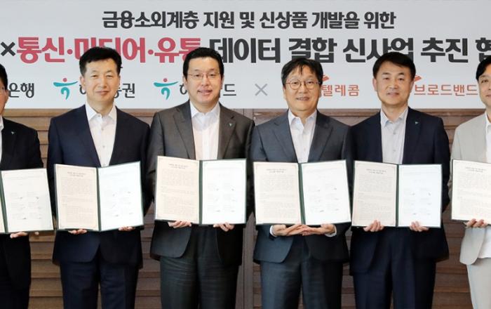 SK텔레콤과 SK브로드밴드, 11번가 등 ICT 패밀리 3사와 하나은행, 하나증권, 하나카드 등 하나금융그룹 계열 3사는 서울 중구 소재 하나은행 본사에서 ‘통신·금융·미디어·유통 데이터 결합 신사업 추진 협약’을 체결했다고 16일 밝혔다. 6개사는 이날 협