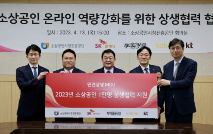 KT가 소상공인시장진흥공단과 카카오, SK플래닛, 우아한형제들과 함께 '소상공인 온라인 역량 강화를 위한 상생협력' 추진 MOU를 체결했다고 14일 밝혔다. 이번 협력은 소상공인시장진흥공단(이하 소진공)과 KT를 비롯한 민간 대표 플랫폼사들이 힘을 합쳐 소상공인 온