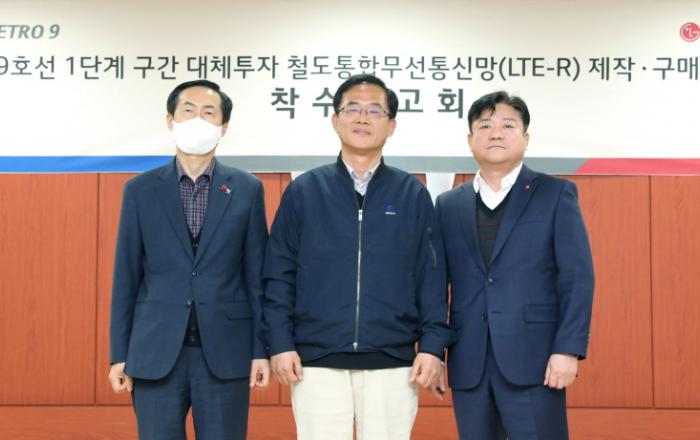 LG유플러스는 국제통신공업과 컨소시엄을 구성하고, 서울시 지하철 9호선에 LTE-R 구축을 본격화하는 착수보고회를 가졌다고 13일 밝혔다. 서울시메트로9호선 본사에서 열린 착수보고회는 LG유플러스 최택진 기업부문장(부사장), 서울시메트로9호선 배현근 대표