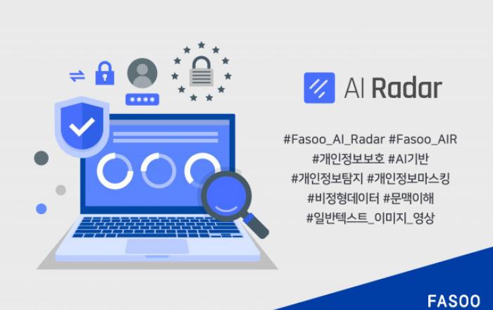 파수가 최신 AI 기술을 기반으로 비정형 데이터 내 개인정보를 검출 및 마스킹할 수 있는 신규 솔루션 ‘파수 AI 레이더(Fasoo AI Radar, 이하 파수 AIR)’를 공개했다.파수의 개인정보관리 노하우가 집대성된 파수 AIR는 텍스트, 이미지, 영상 등에 포함된