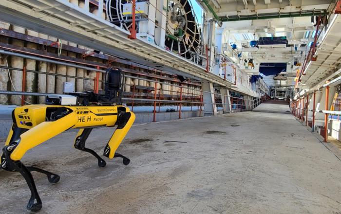 현대건설이 인공지능을 갖춘 무인 안전 서비스 로봇 ‘스팟’을 건설현장에 투입, 건설현장의 품질 및 안전 관리 무인화에 앞장선다. 현대건설이 건설현장에 도입한 ‘스팟’은 4족 보행 로봇으로, 상부에 다양한 센서와 통신 장비 등 인공지능 기반 소프트웨어를 탑재할 수 있다.