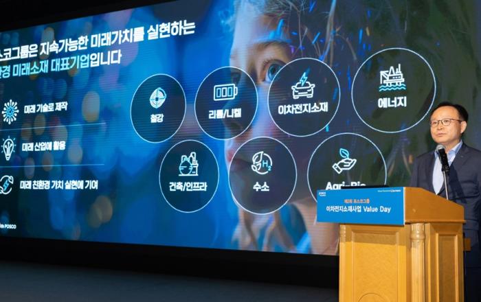 포스코홀딩스가 11일 포스코센터에서 그룹 이차전지소재사업 성장비전과 목표를 발표하는 <제2회 포스코그룹 이차전지소재사업 Value Day(밸류데이)>를 개최했다. 이날 행사에는 포스코홀딩스 정기섭 전략기획총괄 (CSO, 대표이사 사장), 유병