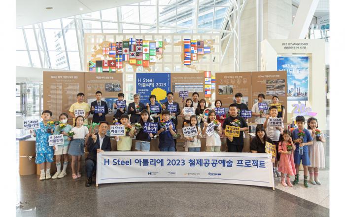 현대제철이 인천 송도 센트럴파크에 새로운 철제 예술품을 설치해 시민들의 휴식공간에 문화의 꽃을 피워냈다. 현대제철은 13일 인천경제자유구역청 대강당에서 'H Steel 아틀리에 2023 철제공공예술 프로젝트' 작품 기증식을 가졌다.