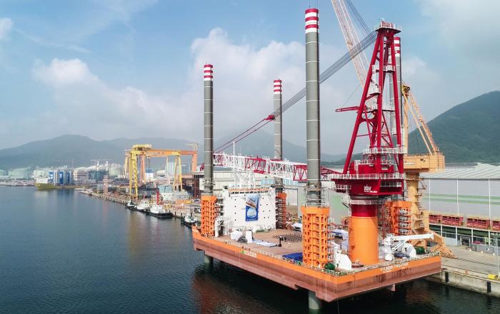 국내 최초의 해상풍력 전용 설치선 ‘현대프론티어호’가 정부 국책과제로 선정된 지 6년 만에 1만 4000톤급 초대형 선박의 위용을 갖추고 출항에 나섰다. 현대스틸산업은 13일(화) 경남 통영 앞바다에서 현대프론티어호 출항식을 개최했다. 이날 행사는 현대스
