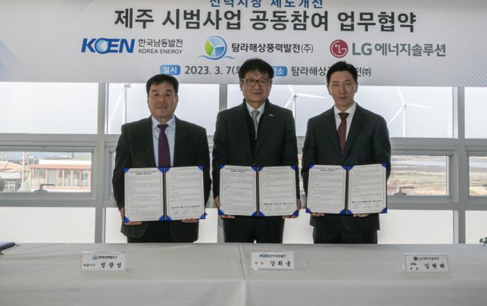 LG에너지솔루션 사내독립기업 AVEL(에이블)이 재생에너지 산업 활성화에 나선다. 7일 AVEL은 제주시 한경면에 위치한 탐라해상풍력발전 본사에서 한국남동발전 강희웅 신재생에너지처장, 탐라해상풍력발전 정광성 대표, AVEL 김현태 대표 등이 참석한 가운데 ‘전