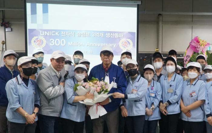 자동차용 전자식 솔레노이드 밸브 전문 제조 업체인 유니크가 12월 15일 솔레노이드 밸브의 3억 개 생산 달성을 기념하는 행사를 가졌다고 22일 밝혔다.유니크는 1992년 솔레노이드 밸브의 국산화에 처음 성공했으며, 이를 시작으로 30년간 솔레노이드 밸브를 꾸준히 생산