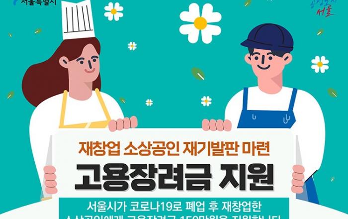 서울시가 사회적 거리두기 완화에 따라 민생경제 회복 속도를 높이고, 영세 소상공인의 재기 발판 마련을 지원하기 위해 코로나19로 폐업한 후 재창업한 소상공인이 올해 신규인력을 1명 채용할 때마다 150만원의 고용장려금을 지원한다. ‘재창업 소상공인 고용장려금’은 올해
