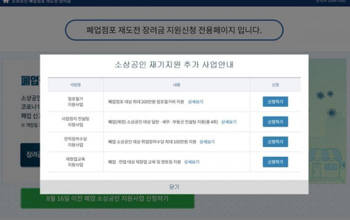 그동안 여기저기 흩어져 있던 폐업 소상공인 재기지원 사업 신청이 이제는 한 곳에서 가능해진다.중소벤처기업부는 폐업(예정) 소상공인이 재기지원 사업을 온라인으로 일괄 조회하고 신청할 수 있도록 ‘폐업점포 재도전 장려금’ 누리집(전용 시스템)을 개편했다고 12일 밝혔다.▲