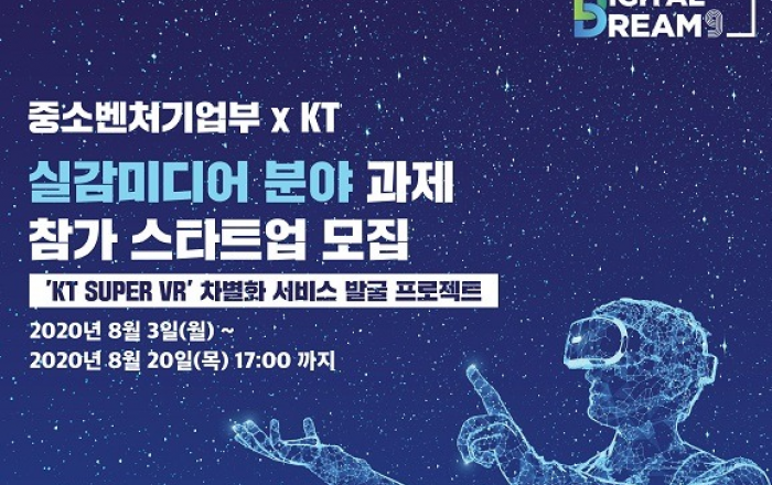 국내 대표 VR 플랫폼 사업자 KT가 중소벤처기업부(이하 중기부), 경기창조경제혁신센터와 함께 실감미디어 생태계 확장을 위한 실감미디어 서비스 스타트업 공모전을 개최한다. 이번 공모전은 대기업이 제시한 과제를 스타트업이 해결하는 새로운 협업 방식의 프로젝트인 ‘연결의