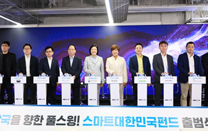 정부가 포스트 코로나 시대에 대비, 대한민국의 디지털 경제로의 전환을 앞당기기 위해 조성하는 ‘스마트대한민국펀드’가 본격 출범했다. 중소벤처기업부는 20일 오후 서울 역삼동 팁스타운에서 스마트대한민국펀드에 참여하는 멘토기업 등과 함께&nbs