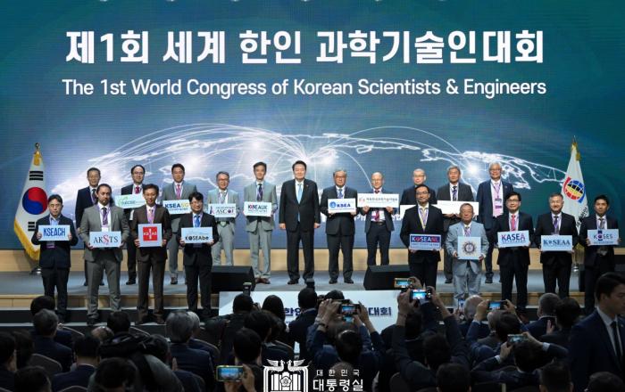 윤석열 대통령은 5일 오전 과학기술회관에서 열린 ‘제1회 세계 한인 과학기술인 대회’에 참석해 재외 한인 과학기술인들의 기여와 노고를 치하하고, 과학기술의 글로벌 협력 필요성과 세계 최고의 연구성과 창출을 위한 젊은 과학기술 인재에 대한 전폭적 지원 의지를 밝혔다.