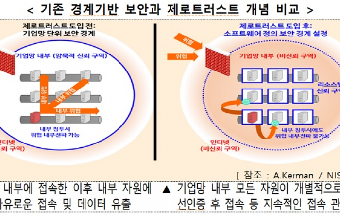 정부가 새로운 보안 개념인 제로트러스트 가이드라인을 마련했다. 코로나19로 인해 비대면 사회가 가속화됨에 따라 기존 보안모델로는 취약점에 대응하기에 한계가 있다는 판단 때문이다. 과학기술정보통신부는 지난해 10월 국내 산·학·연·관 전문가로