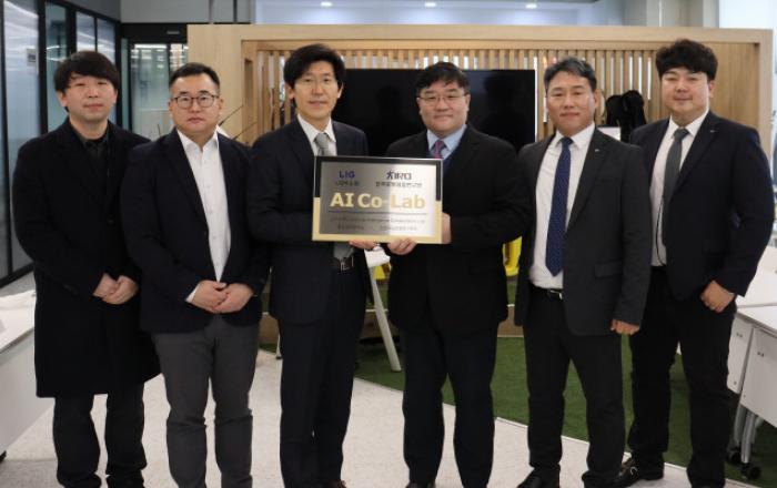 LIG넥스원이 17일 서울 강남구 수서에 위치한 한국로봇융합연구원 URI-Lab 서울사무소에서 이승영 LIG넥스원 C4ISTAR 연구개발2본부장, 유재관 무인체계연구소장, 정구봉 한국로봇융합연구원(이하 KIRO) 선임연구본부장, 정현준 본부장, 박규희 기획조정실장 등