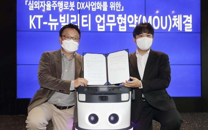 디지털 플랫폼 기업 KT(www.kt.com)가 뉴빌리티(www.neubility.co.kr)와 실외 자율주행 로봇 사업 확산을 위한 준비에 나선다고 16일 밝혔다. 뉴빌리티는 국내 자율주행 로봇 기술 선도 기업이다. 2017년 스타트업으로 시작해 카메라 기반