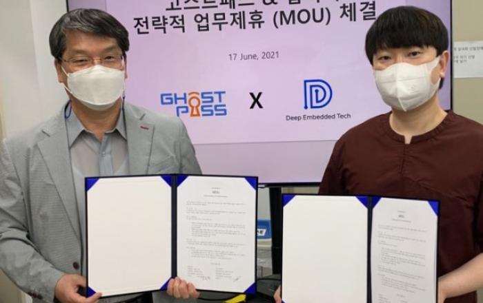 인공지능(AI) 핀테크 전문 기업 고스트패스가 안면 인식 결제 시스템 대중화를 위해 ‘YBPU (YB Processing Unit)’ 기술을 보유한 건국대학교 산하 협력 기관 딥이티와 8월 17일 업무 협약(MOU)을 체결했다고 23일 밝혔다.▲ 왼쪽부터 딥이티 조용범