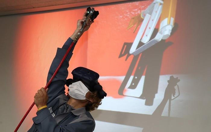 삼성중공업이 14일 친환경 도료 적용 확대를 위한 '도장 가상현실(Virtual Reality, VR) 교육훈련 시스템'을 개발하고 거제 조선소에 본격 적용했다고 밝혔습니다.삼성중공업이 자체 개발한 도장 VR 시스템은 HMD(Head Mount Display)를 통해