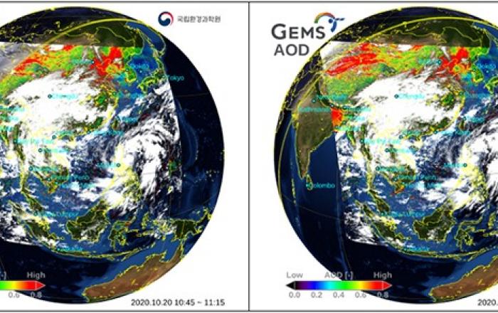 미세먼지 등 대기오염물질의 이동을 실시간으로 감시하기 위해 발사한 정지궤도 환경위성의 영상이 처음 공개됐다.환경부, 과학기술정보통신부, 해양수산부는 18일 천리안 2B호에 장착된 정지궤도 환경위성에서 관측된 아시아 대기질 자료를 최초로 공개했다.▲ 2020년 10월 2