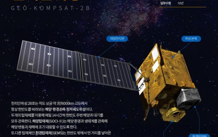 과학기술정보통신부와 해양수산부, 환경부는 5일부터 국립해양조사원 누리집을 통해 천리안위성 2B호의 표준 해양영상정보 서비스를 개시한다고 4일 밝혔다.천리안위성 2B호는 한반도를 포함한 동아시아 주변의 해양 및 대기 환경을 관측하기 위한 정지궤도 위성으로 지난 2월 19