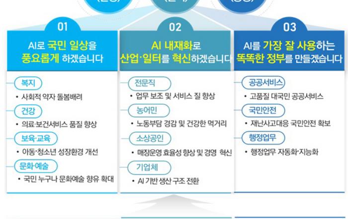 정부가 내년에 9090억 원을 투입해 국민일상, 산업현장, 공공행정 등 국가 전방위적으로 인공지능을 확산해 국민 모두 인공지능 혜택을 누리는 ‘전국민 인공지능 일상화’를 추진한다. 또한 내년부터 미국 등 선도대학과 AI 글로벌 공동연구를 추진하고, 우리나라가