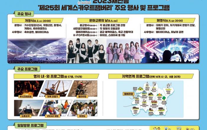 ‘2023 새만금 제25회 세계스카우트 잼버리’ 개막이 일주일 앞으로 다가온 가운데 정부와 잼버리조직위원회가 전 세계 스카우트 대원 4만 3000명을 맞이할 준비를 끝냈다고 여성가족부가 25일 밝혔다. 세계잼버리는 다음 달 1일부터 12일까지 전북 부안군 새만