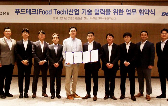 두산로보틱스는 24 일 , 아워홈과 서울시 강서구에 위치한 아워홈 마곡식품연구센터에서 ‘푸드테크 산업 기술협력’을 위한 업무협약 (MOU) 을 체결했다고 25 일 밝혔다 . 이날 행사에는 두산로보틱스 류정훈