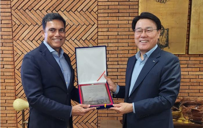 최정우 포스코그룹 회장은 21일 인도 JSW社의 비자야나가르 제철소 방문 후 사쟌 진달(Sajjan Jindal) 회장을 만나 친환경 철강 기술 및 미래 성장사업 협력 방안에 대해 논의했다. 이번 최 회장의 인도 방문은 포항제철소 복구 작업에 큰 도움을 준 사쟌 진