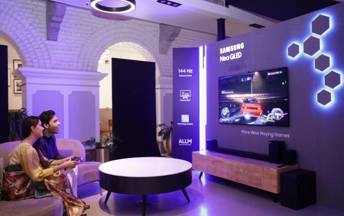삼성전자가 4일 인도 방갈로르의 삼성 오페라 하우스에서 2023년 Neo QLED 제품 공개 행사를 열고 삼성 TV의 강력한 성능 안전한 연결성 몰입형 게이밍ㆍ개인 맞춤형 경험ㆍ지속가능성을 강조했다. 행사장 TV 존에는 98형부터 55형까지 Neo QLED 주요