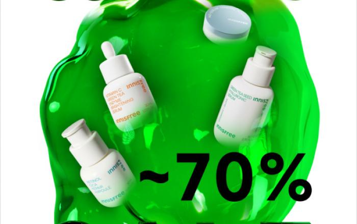 고효능 자연주의 브랜드 이니스프리(www.innisfree.com)가 3일부터 최대 70% 할인과 풍성한 혜택이 쏟아지는 ‘5월 슈퍼 빅세일’을 진행한다.