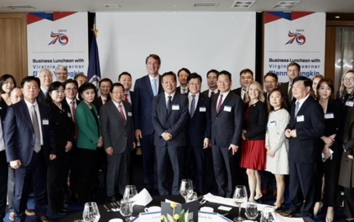 한국무역협회(KITA)는 28일 서울 삼성동 코엑스 인터컨티넨탈 호텔에서 한미 동맹 70주년을 기념해 '美 버지니아 주지사 초청 기업인 오찬 간담회'를 개최했다. 간담회에는 글렌 영킨(Glenn Youngkin) 버지니아 주지사, 캐런 메릭(Caren Merrick