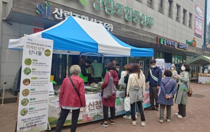 지리산 산청 산나물이 서울 소비자 공략에 나선다. 13일 산청군은 이날부터 오는 15일까지 서울 송파구 삼전동 산림조합중앙회와 서초구 양재동 농협하나로 마트에서 '지리산산청 산나물 꾸러미 특판행사'를 개최한다고 밝혔다. 이번 행사는 봄철 산나물 소비촉진을 통해