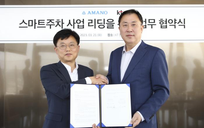 KT(www.kt.com)가 주차관제 시스템 전문기업 아마노코리아와 ‘스마트 주차’ 사업 분야 협력을 위한 업무협약을 체결했다고 22일 밝혔다. 양사는 신규 사업을 공동으로 발굴하고 기술 역량을 합쳐 스마트 주차 시장에서 선도적 입지를 확보한다는 방침이다.&