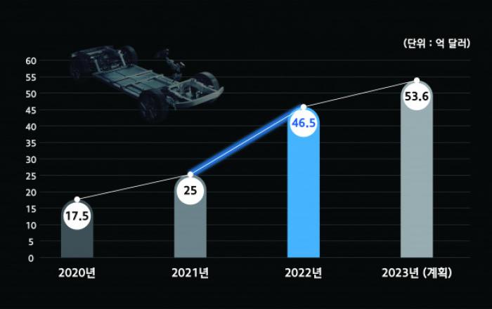 현대모비스가 지난해 해외 완성차 업체를 대상으로 46.5억 달러(약 5.7조원) 규모의 수주 실적을 달성했다. 2000년대 초반부터 자동차 핵심부품 해외 수주에 본격적으로 나선 이래로 사상 최대 성과다. 애초 계획했던 목표치를 초과 달성한 것은 물론, 전년대비 무려 2