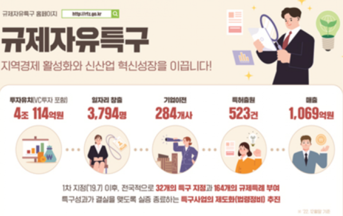 이영 중기부 장관이 지난해 10월 서울 강남구 코엑스에서 열린 ‘2022 규제자유특구 챌린지’ 개막식에 참석, 비대면 소아과 진료 서비스를 살펴보고 있다. [사진=중소벤처기업부] 도입 4년차를 맞은 규제자유특구가 4조 114억원의 투자를 유치하고 380