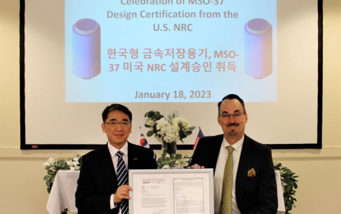 두산에너빌리티의 국내 사용후핵연료 건식저장사업 참여에 청신호가 켜졌다.두산에너빌리티는 미국 NAC사(Nuclear Assurance Corporation)와 공동개발한 사용후핵연료 금속 저장용기가 미국 원자력규제위원회(NRC) 설계승인을 취득했다고 19일 밝혔다. 미국