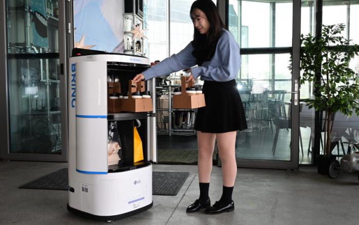 LG전자가 인공지능(AI) 로봇과 고도화된 로봇 관제 솔루션을 앞세워 배송, 물류 서비스 등 B2B 분야 사업 확대에 속도를 낸다. LG전자는 이달부터 카카오모빌리티가 대형 오피스, 호텔, 아파트, 병원 등 다양한 건물 공간을 대상으로 처음 선보이는 로봇