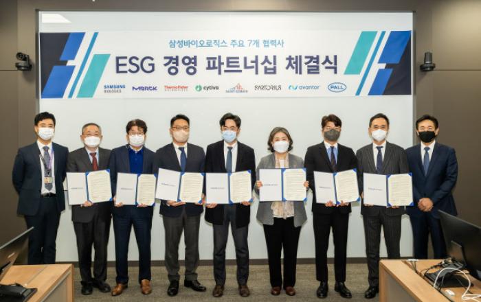 삼성바이오로직스가 협력사의 ESG 경영 역량을 강화하기 위한 적극적인 행보를 이어가고 있다.삼성바이오로직스는 12월 13일(화) 송도 본사에서 주요 협력사와 ‘ESG 파트너십 체결식’을 열었다고 밝혔다.이날 체결식에는 삼성바이오로직스를 비롯해 글로벌라이프사이언스 솔루션