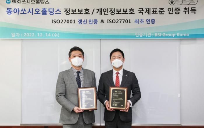 동아쏘시오홀딩스는 BSI(British Standards Institution, 영국왕립표준협회)로부터 정보보호 경영시스템 국제표준인 ‘ISO 27001’의 재인증 및 개인정보보호 경영시스템 국제표준인 ‘ISO 27701’의 신규 인증을 받았다고 14일 밝혔다.ISO