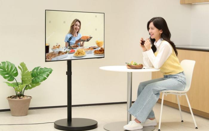 삼성전자가 43형 모니터용 무빙 스탠드를 2일 출시했다. 삼성전자는 기존 27형과 32형 모니터용에 이어 43형 ‘무빙 스탠드’를 선보였다. ‘무빙 스탠드’는 우레탄 재질의 바퀴로 마모 및 소음 걱정 없이 어디든 편리하게 이동할 수 있다. 삼성전자 스마트모니