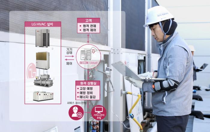 LG전자가 국내 최초 ICT 기반의 상업용 시스템 에어컨 원격 유지보수 시스템인 LG 비콘클라우드(LG BECON cloud)에 ‘AI 고장예측’ 기능을 도입한다. LG 비콘클라우드는 시스템 에어컨 운전 상태와 제어, 고장 여부 등을 실시간 모니터링하는