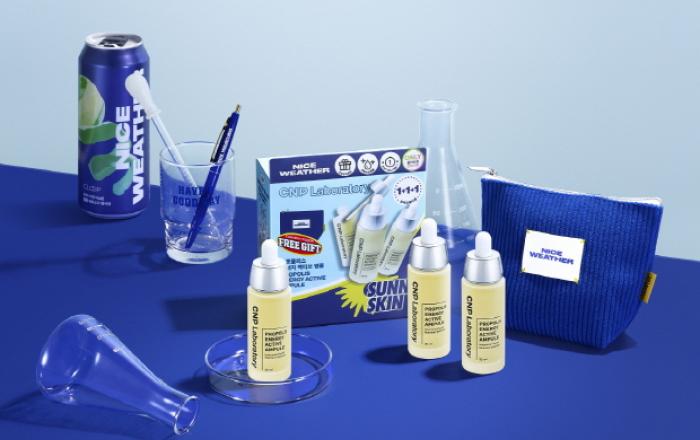 LG생활건강은 더마코스메틱 브랜드 ‘CNP’에서 라이프스타일 브랜드 ‘나이스웨더’와 협업한 기획 제품 3종을 한정 수량으로 출시했다. 나이스웨더는 트렌디한 문화와 제품을 한 공간에서 소비할 수 있는 편집숍을 운영하는 브랜드로, 최근 MZ세대 고객 기반 확