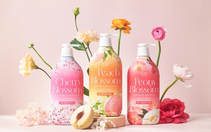 행복을 전하는 아모레퍼시픽 바디케어 브랜드 해피바스가 블로썸 바디워시 3종을 출시한다. 사방에 꽃이 핀 듯 향기로운 꽃잎 퍼퓸 샤워를 선사하는 블로썸 바디워시 라인은 마일드한 약산성 처방