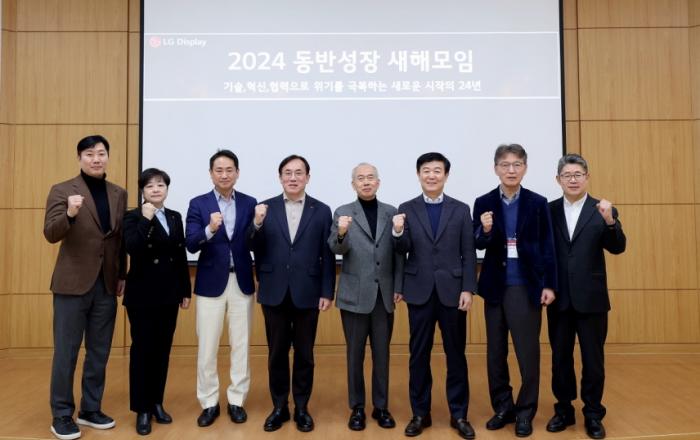 LG디스플레이는 25일 오후 경기도 파주 사업장에서 정철동 사장을 비롯한 주요 경영진과 80여 개의 핵심 부품, 장비 협력사 CEO가 참석한 가운데 ‘2024년 동반성장 새해모임’을 개최했다. LG디스플레이는 이날 행사에서 협력사들을 대상으로 ▲미래기술
