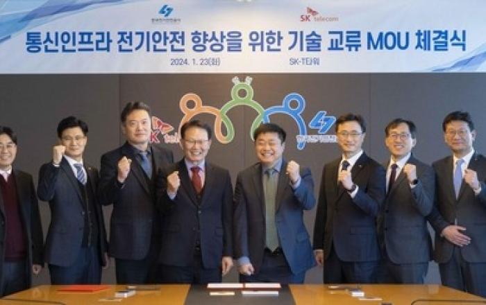 한국전기안전공사는 23일, 서울 을지로 SK-T 타워에서 SK텔레콤 및 12개 계열사와 '통신인프라 전기안전 향상을 위한 업무협약'을 체결했다. 협약 주요 내용으로는 ▲효율적인 전기설비 유지·운용에 상호 협력 ▲전기재해 예방을 위한 전기설비 진단·검사업무 상호 협조