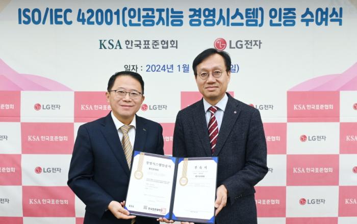 LG전자가 인공지능(AI)을 적용한 생활가전의 개발부터 폐기까지 전 과정에서 데이터 보안이나 윤리적 책임을 성실히 수행하고 있음을 인정받았다. LG전자 H&A사업본부는 지난 19일 서울 강남구 한국표준협회로부터 ‘AI 경영시스템(ISO/IEC 42