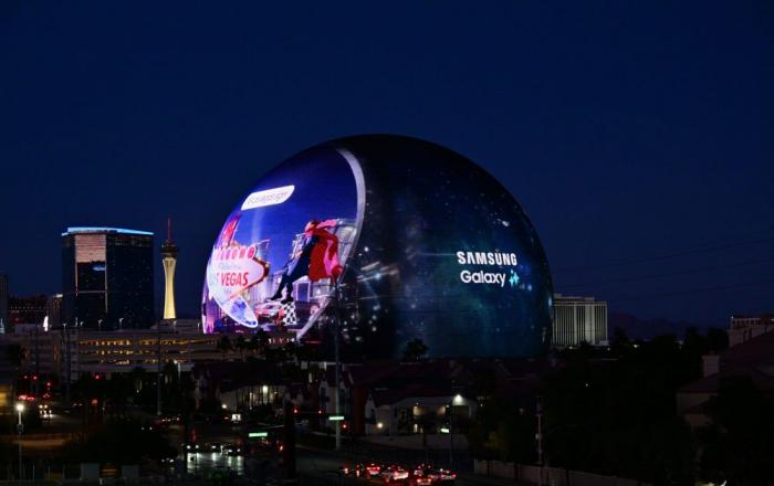 삼성전자가 미국 라스베이거스의 랜드마크 스피어(Sphere)에서 ‘갤럭시 AI’에 대한 기대감을 높이는 대규모 디지털 티징 영상을 선보였다. 8일(현지시간) 세계 최대 전자 전시회 ‘CES 2024’가 열리고 있는 미국 라스베이거스에서 공개된 해당 영상은, 이
