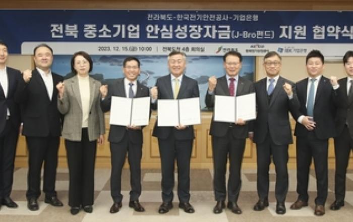 한국전기안전공사가 전라북도, 기업은행과 함께 노후설비 개선이 필요한 지역의 중소기업에 저금리 자금 대출을 지원하며 상생경영 확산에 앞장선다. 전기안전공사는 이달 15일, 전라북도청 청사에서 박지현 사장과 김관영 전북도지사, 기업은행 신준범 호남지역본부장이 함께한 가