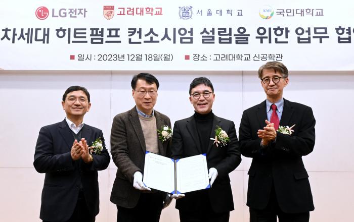 LG전자가 국내 유수 대학과 손잡고 저탄소 난방 솔루션으로 주목받고 있는 차세대 히트펌프 핵심 기술을 개발하기 위한 컨소시엄을 구축했다. LG전자는 18일 서울 성북구 고려대학교 신공학관에서 ‘LG 차세대 히트펌프 컨소시엄 구축을 위한 업무협약(MO