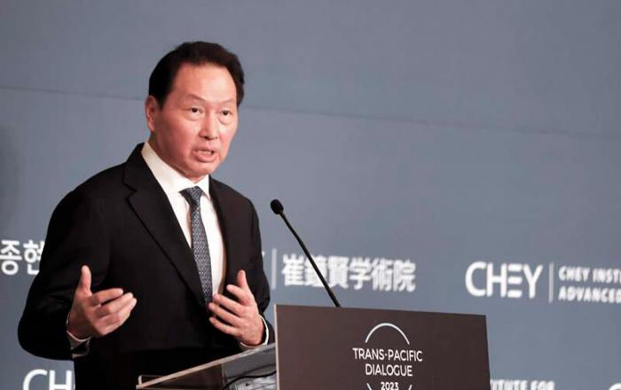 최태원 SK그룹 회장은 “한국과 일본이 EU와 같은 단일 시장 형태의 경제협력체로 발전한다면 엄청난 시너지가 생길 수 있을 뿐 아니라 동북아 평화에도 도움이 될 수 있다”고 밝혔다. 최종현학술원 이사장인 최태원 회장은 4일(현지시간) 학술원이 미국 워싱턴 D.C.